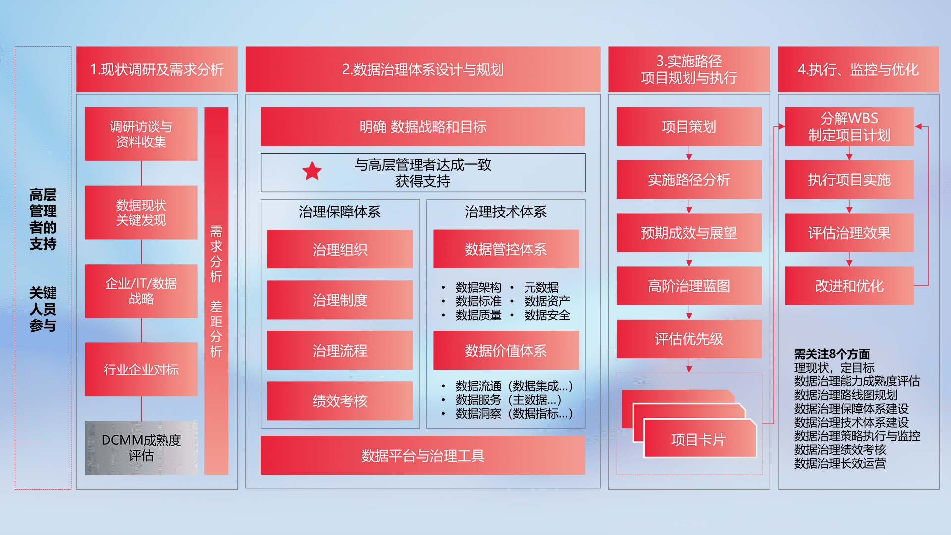 制定并执行统一的数据标准,,,,规范数据定义和格式,,消除冗余和不一致性,,实现跨部门和跨系统的数据一致性,,,,为企业提供标准化的数据基础。。。